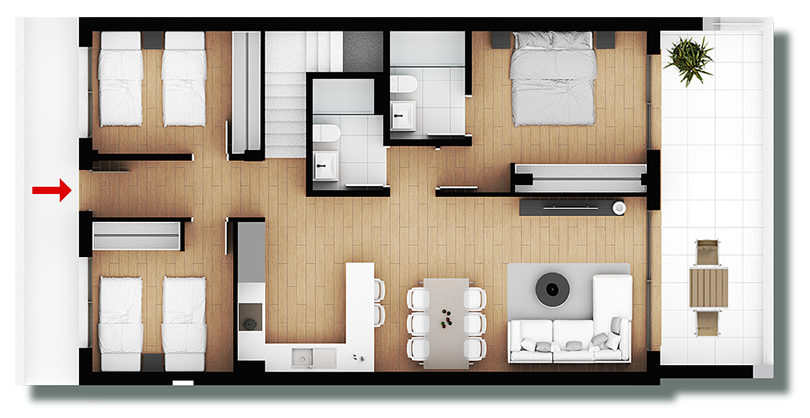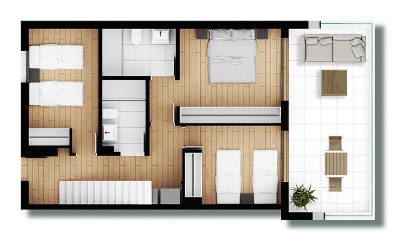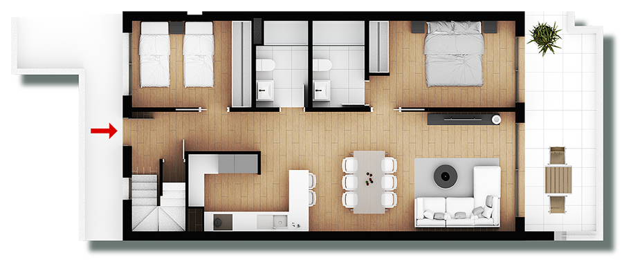 TerrazaDesde33,50 m²hasta56,13 m²