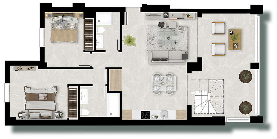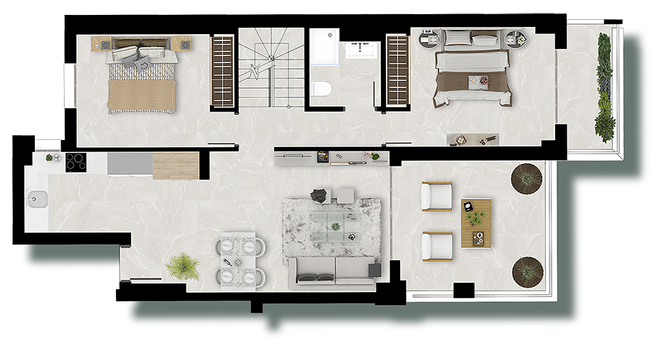 | ÁTICO 2 DORMITORIOS + SOLÁRIUM | ||||