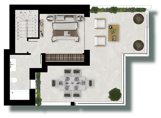 | Terraza | Desde | 23,00 m² | hasta | 113,70 m² |